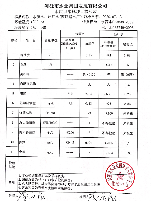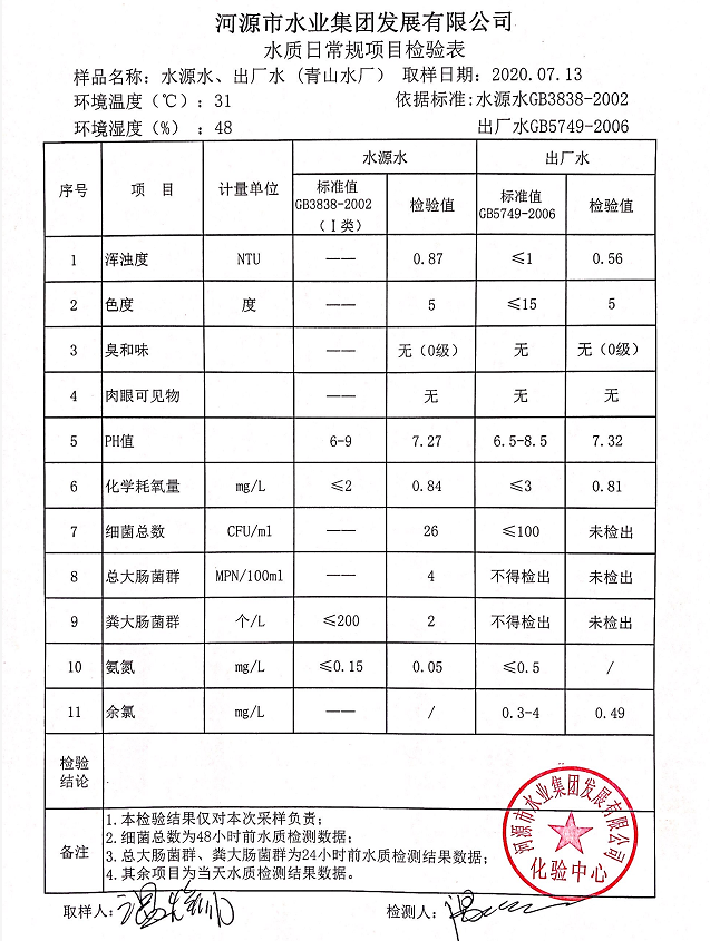 2020年7月13日水质检验报告
