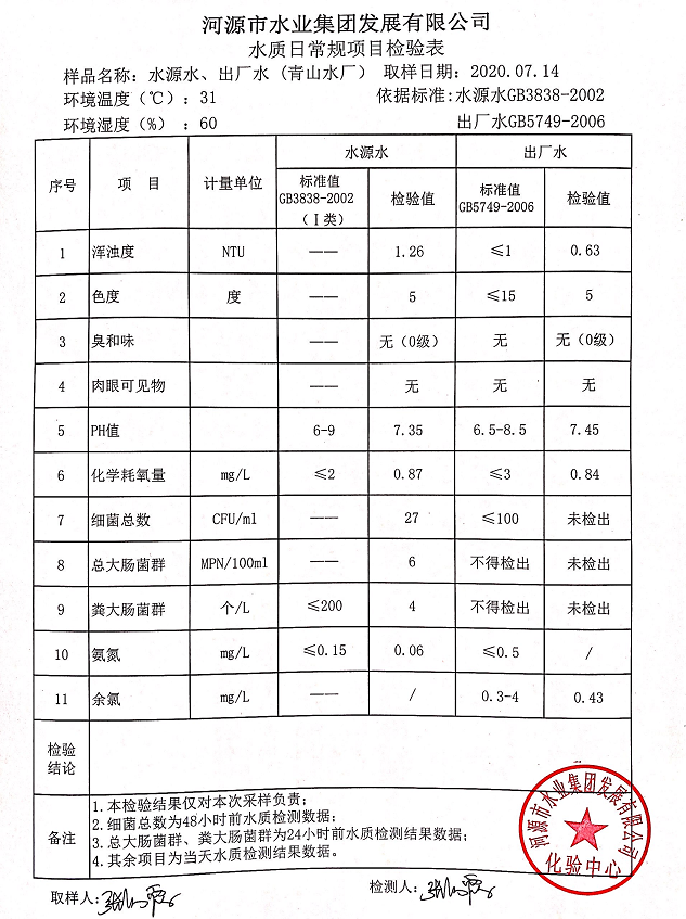 2020年7月14日水质检验报告