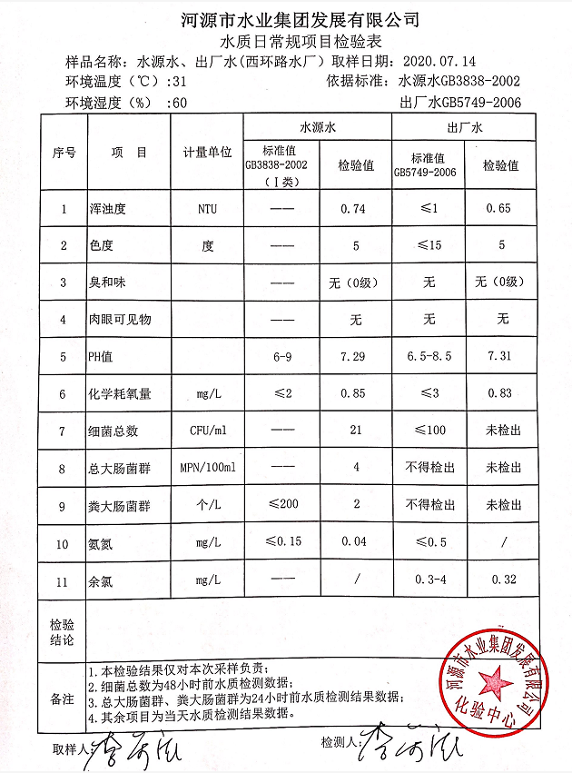 2020年7月15日水质检验报告
