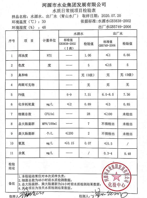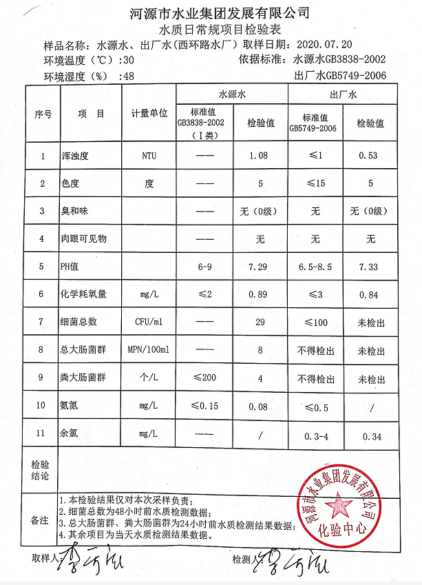 2020年7月20日水质检验报告