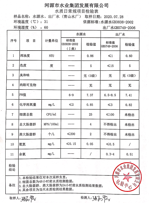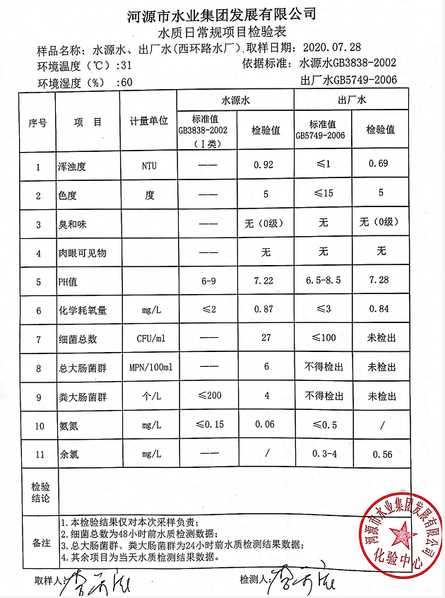 2020年7月28日水质检验报告