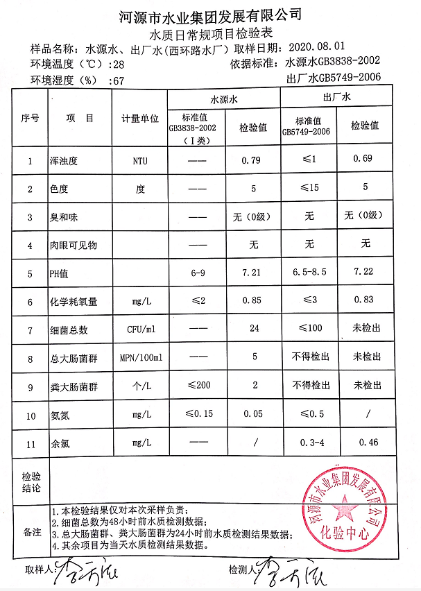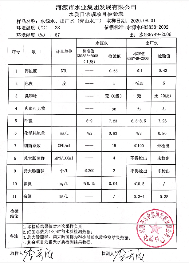 2020年8月1日水质检验报告