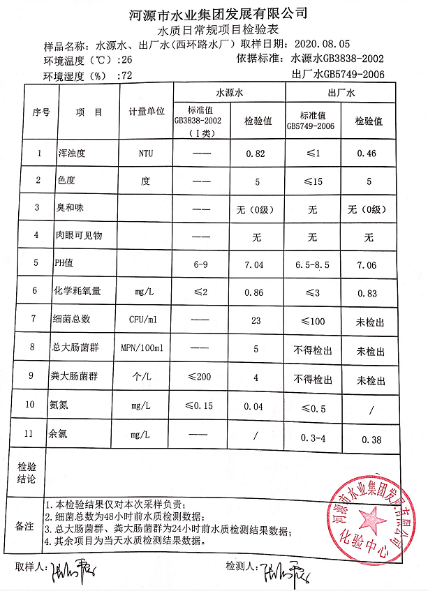 2020年8月4日水质检验报告