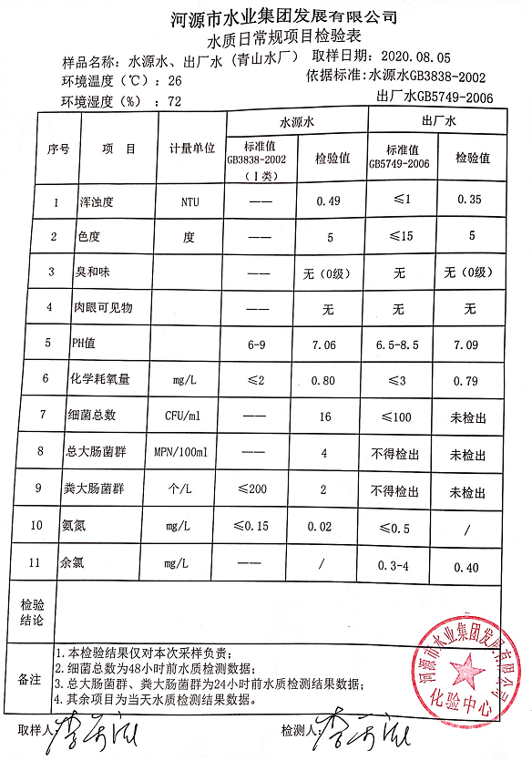 2020年8月5日水质检验报告
