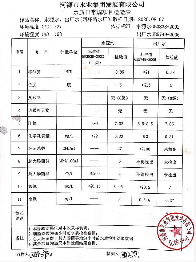 2020年8月7日水质检验报告