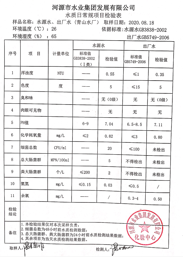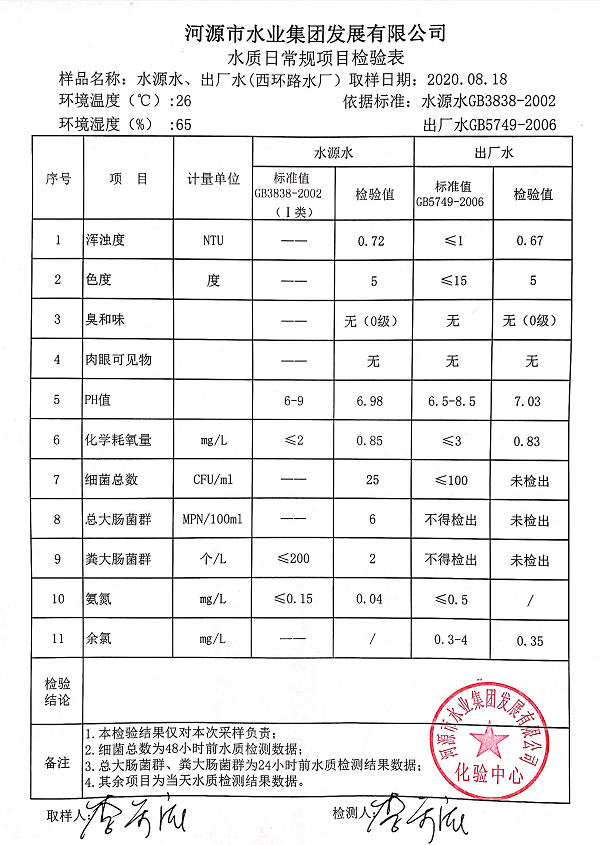 2020年8月18日水质检验报告