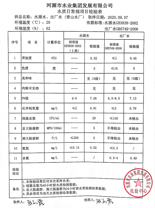 2020年9月7日水质检验报告