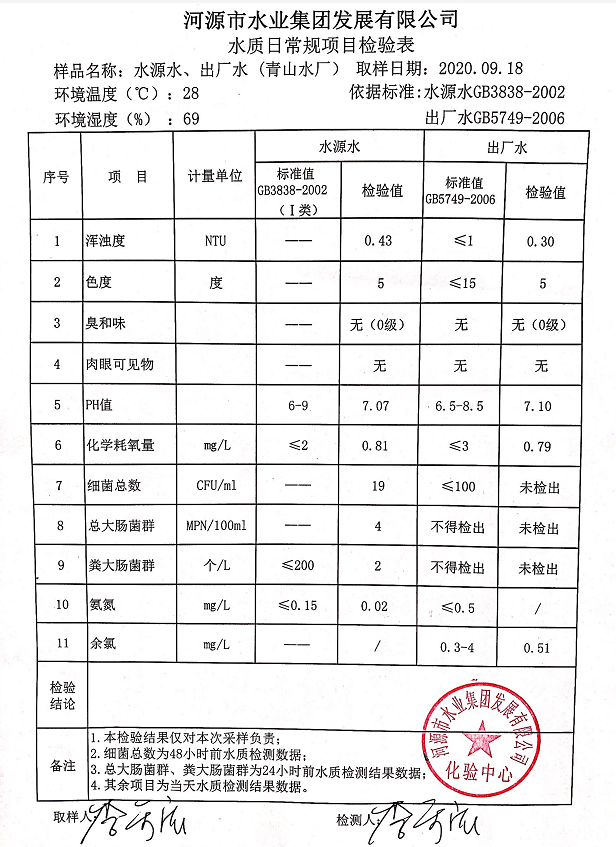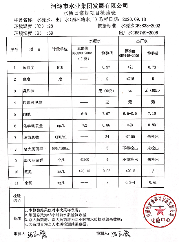 2020年9月18日水质检验报告