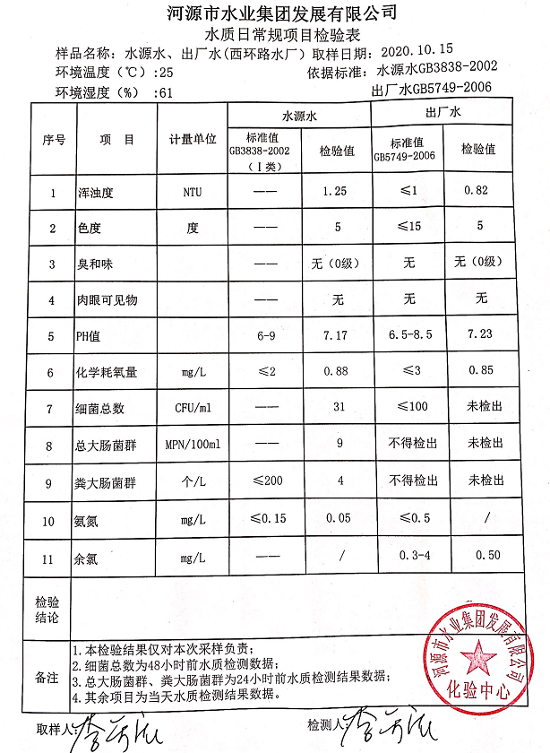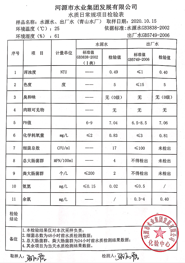 2020年10月15日水质检验报告