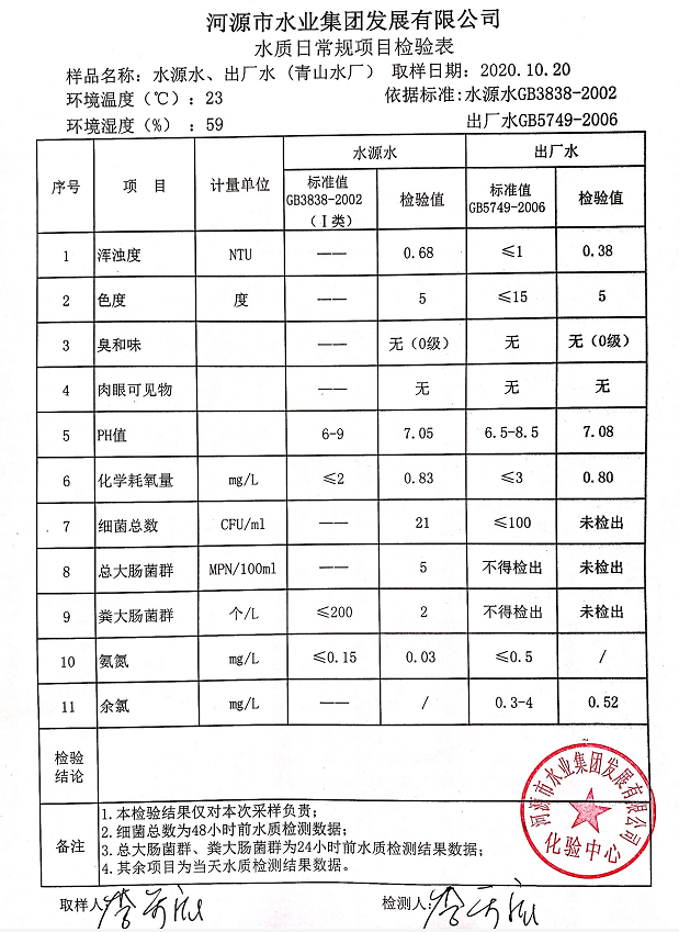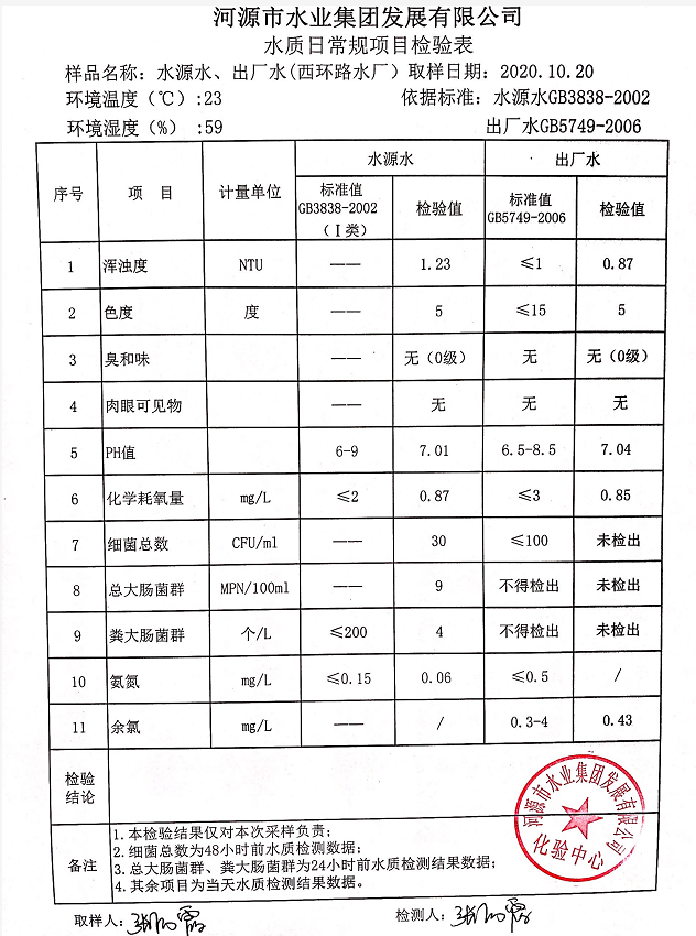 2020年10月20日水质检验报告