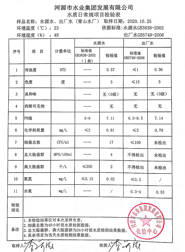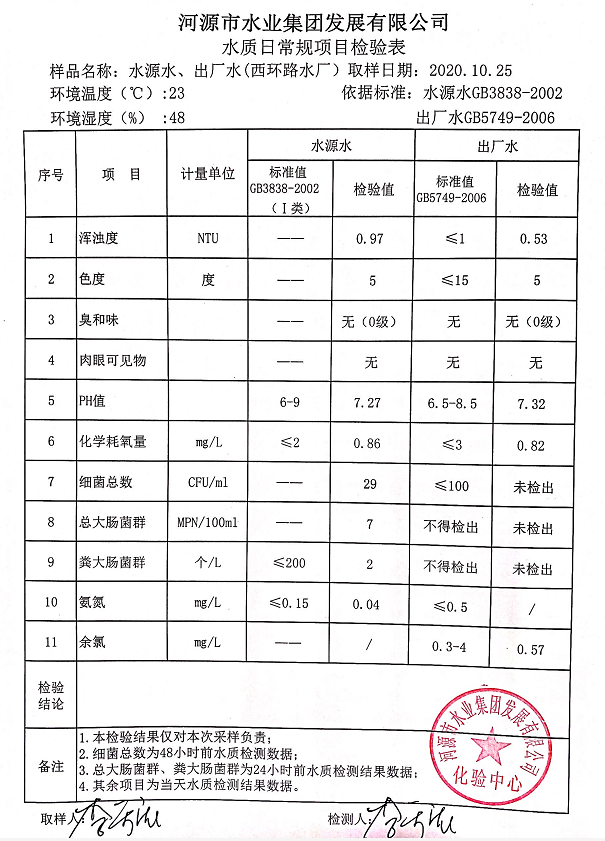 2020年10月25日水质检验报告