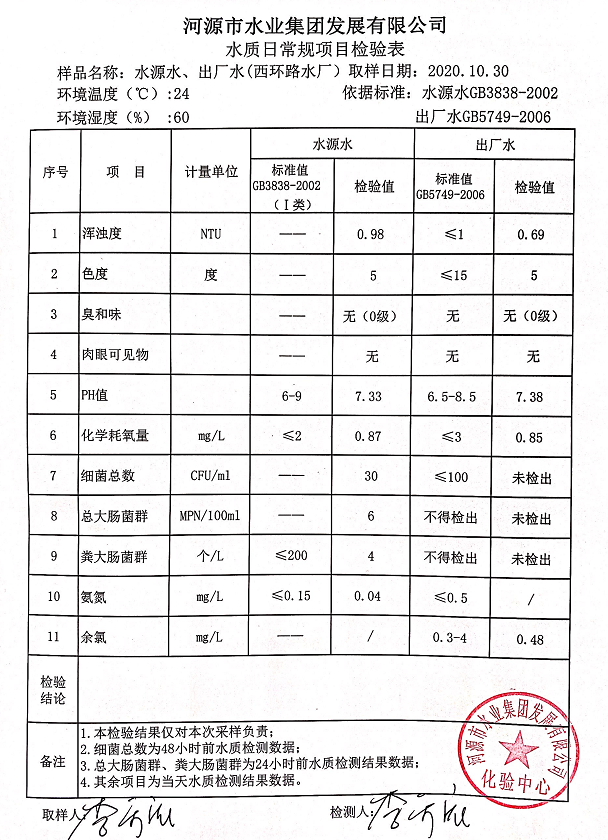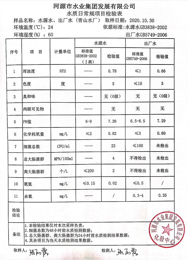 2020年10月30日水质检验报告