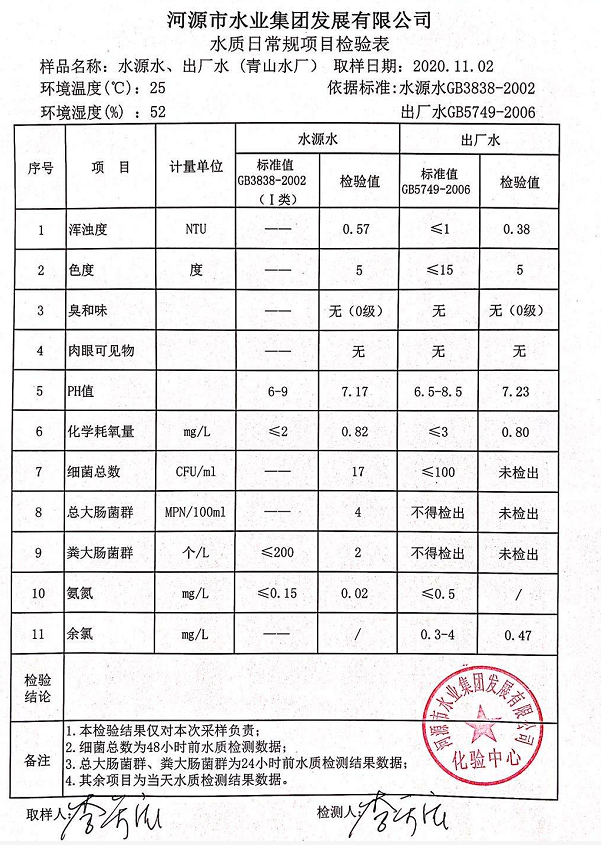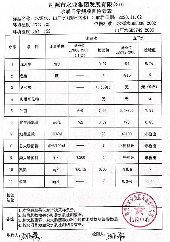 2020年11月2日水质检验报告