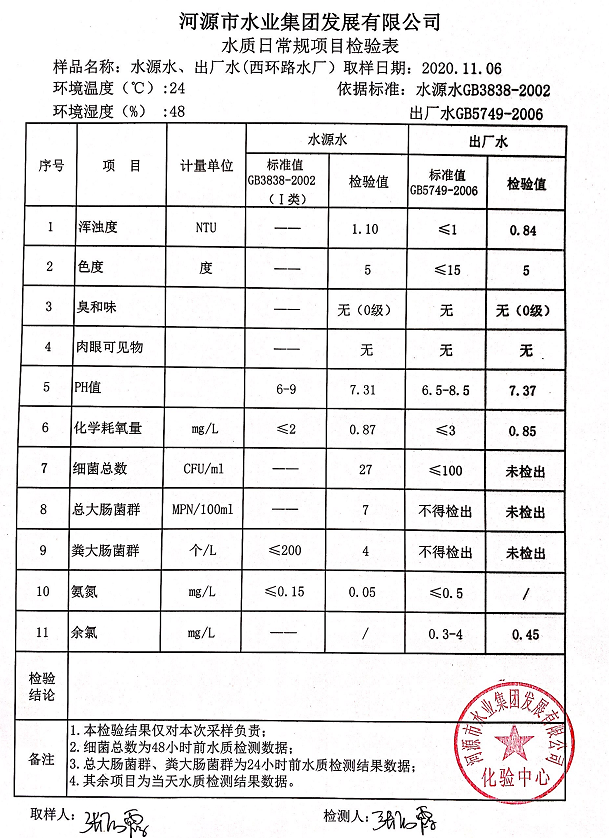 2020年11月5日水质检验报告