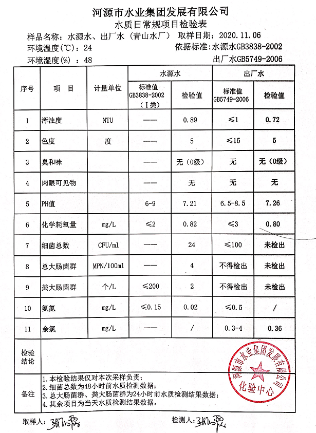 2020年11月6日水质检验报告