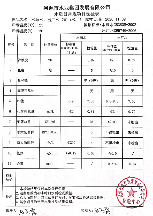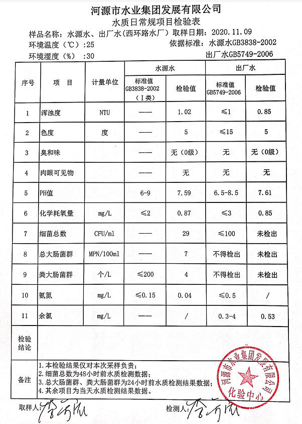 2020年11月9日水质检验报告