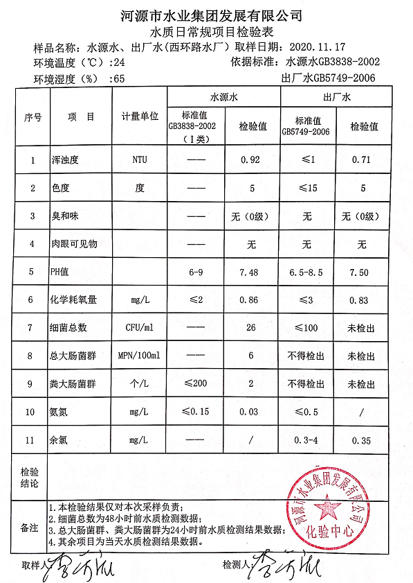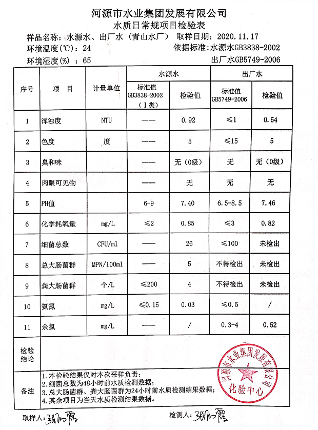 2020年11月17日水质检验报告