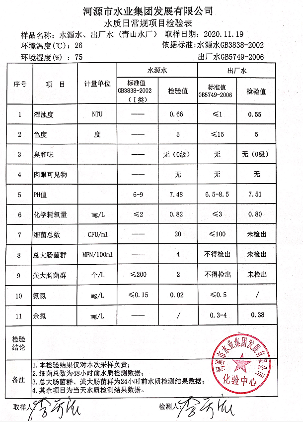 2020年11月20日水质检验报告