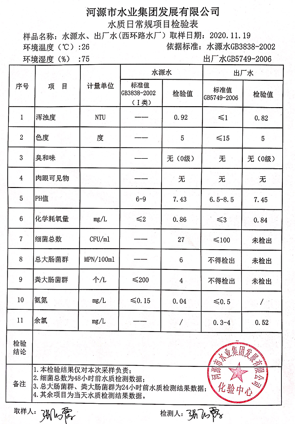 2020年11月19日水质检验报告