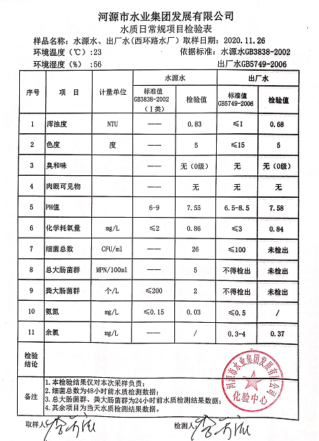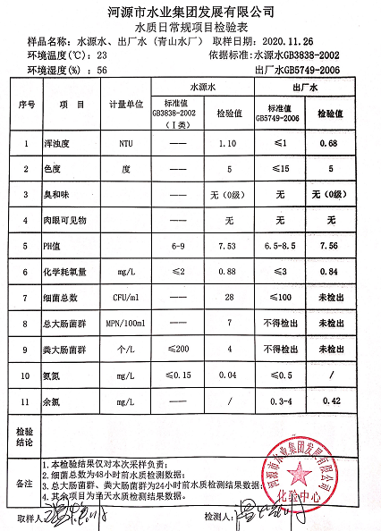 2020年11月26日水质检验报告