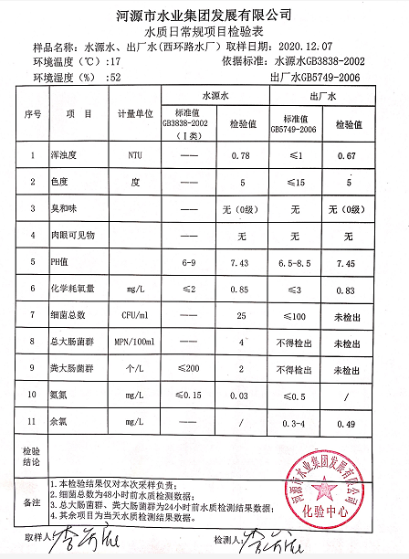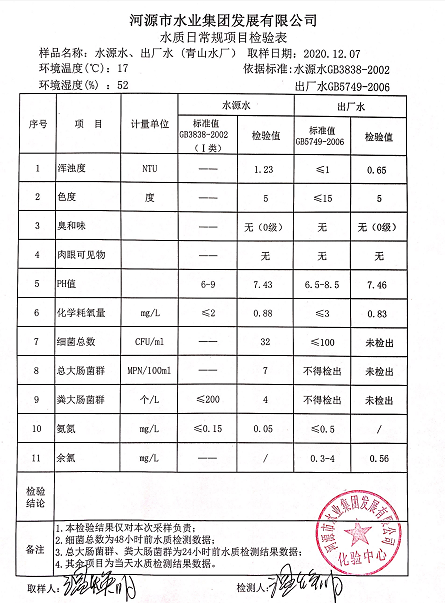2020年12月7日水质检验报告