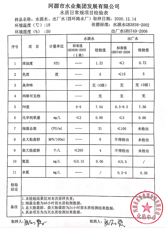 2020年12月14日水质检验报告