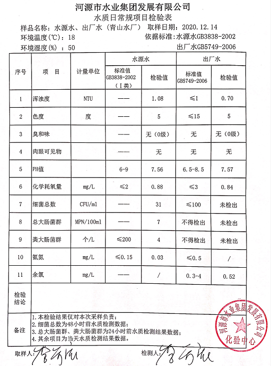 2020年12月15日水质检验报告