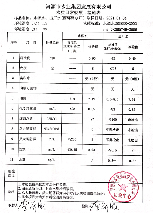 2021年1月4日水质检验报告