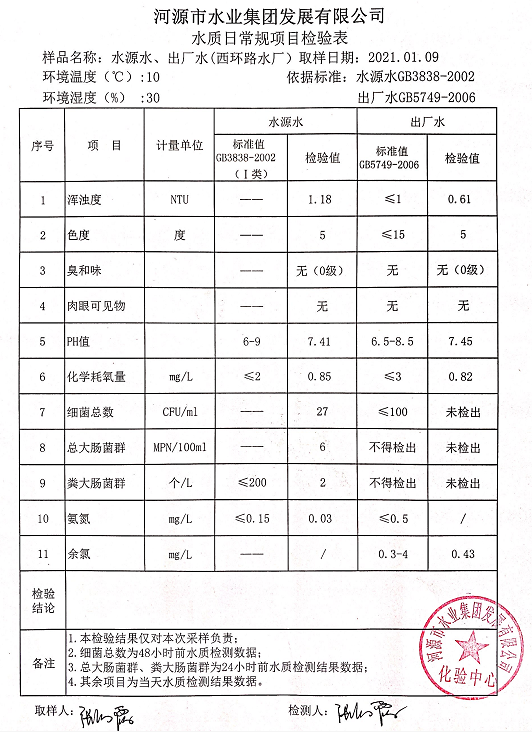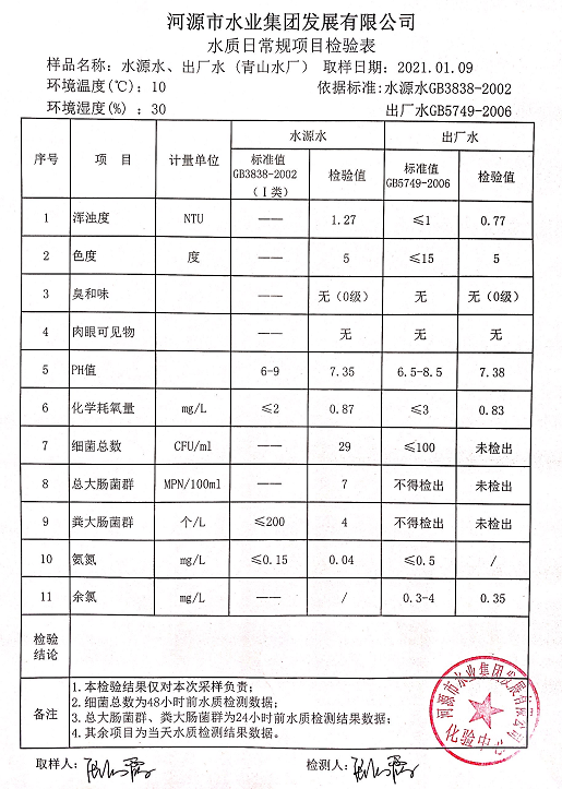2021年1月10日水质检验报告