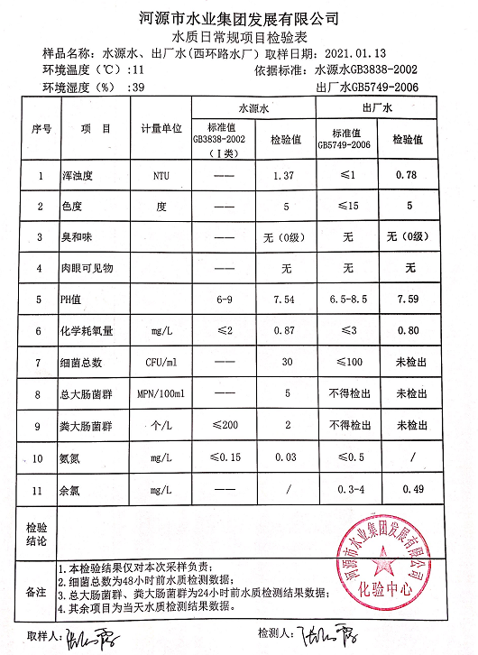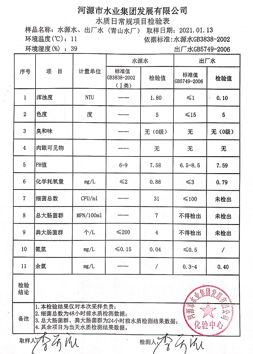 2021年1月13日水质检验报告
