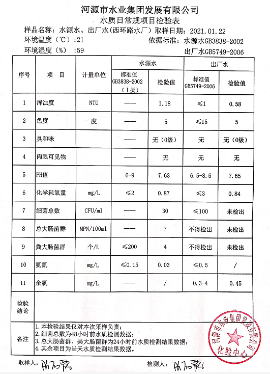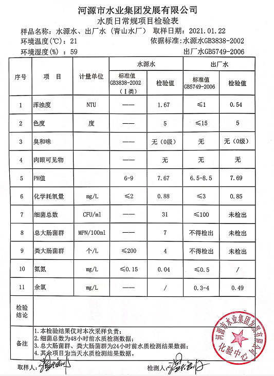 2021年1月21日水质检验报告