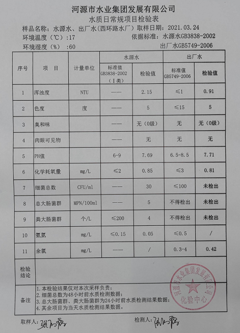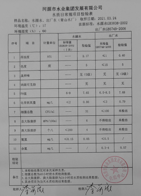 2021年3月24日水质检验报告