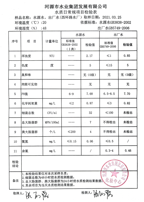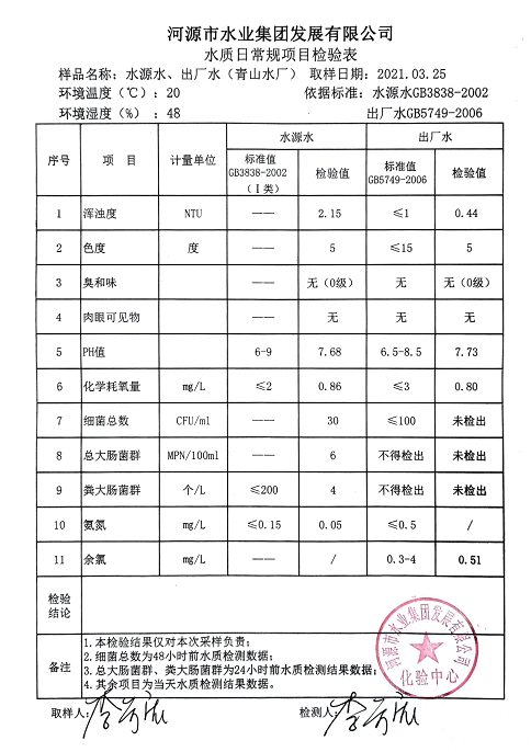 2021年3月25日水质检验报告