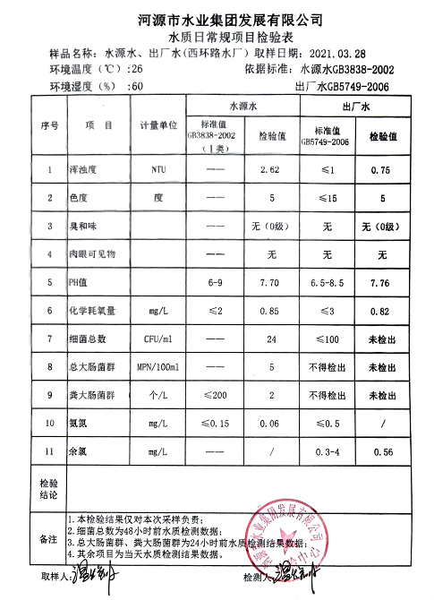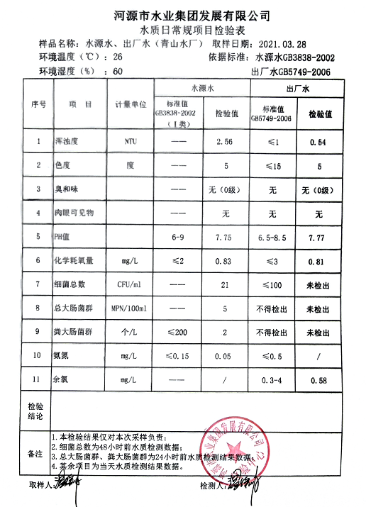 2021年3月28日水质检验报告