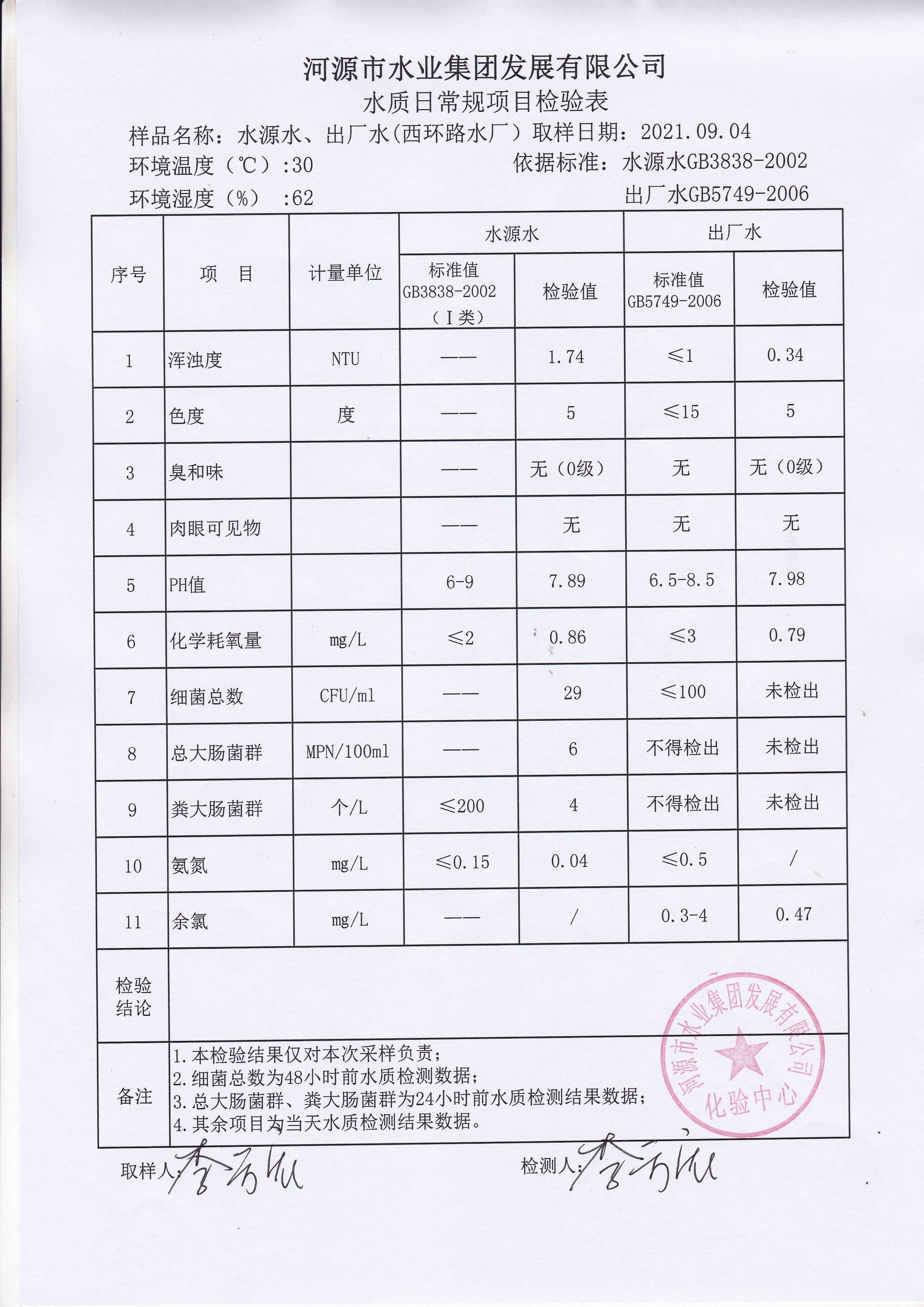 2021年9月4日水质检验报告