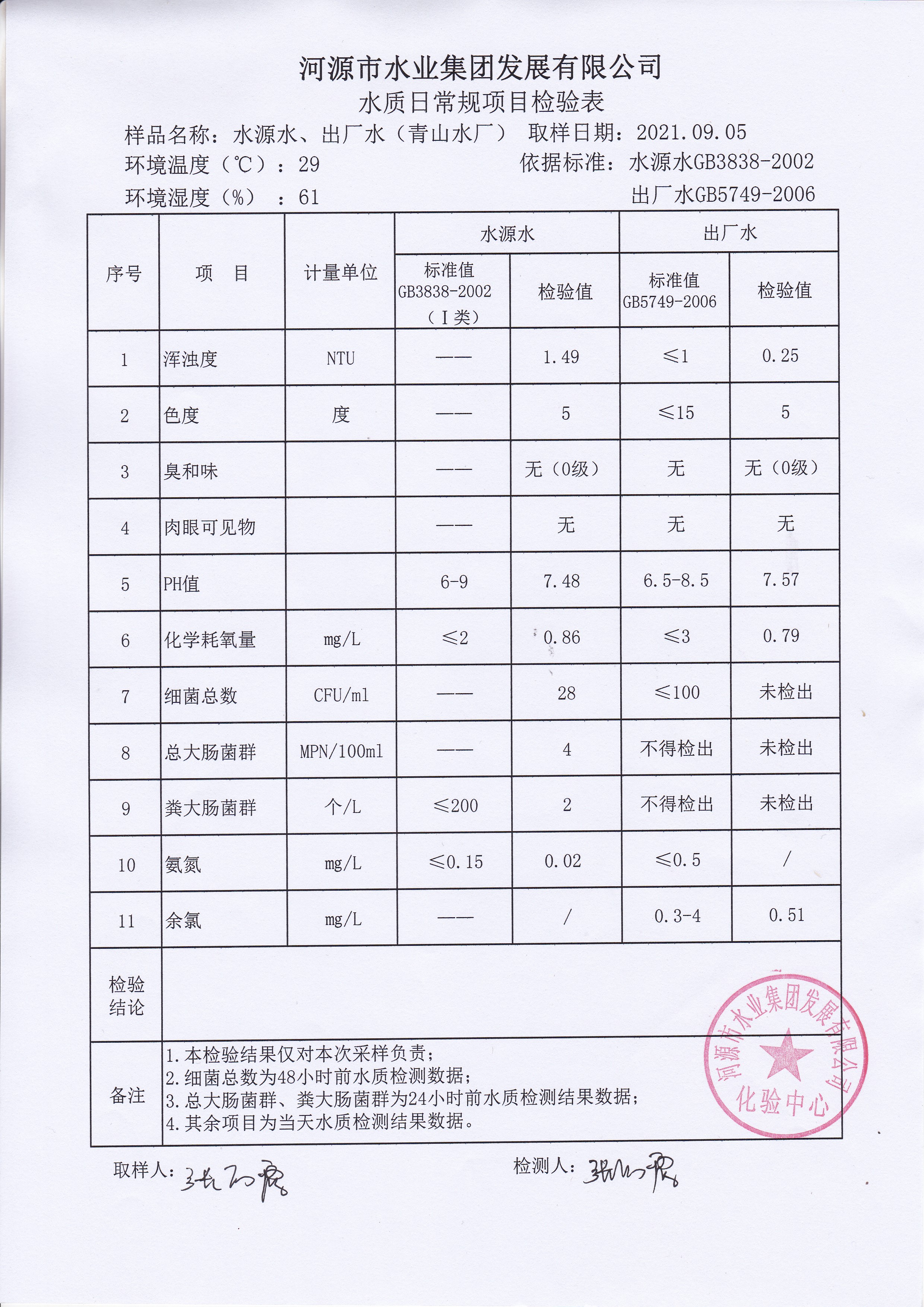 2021年9月5日水质检验报告