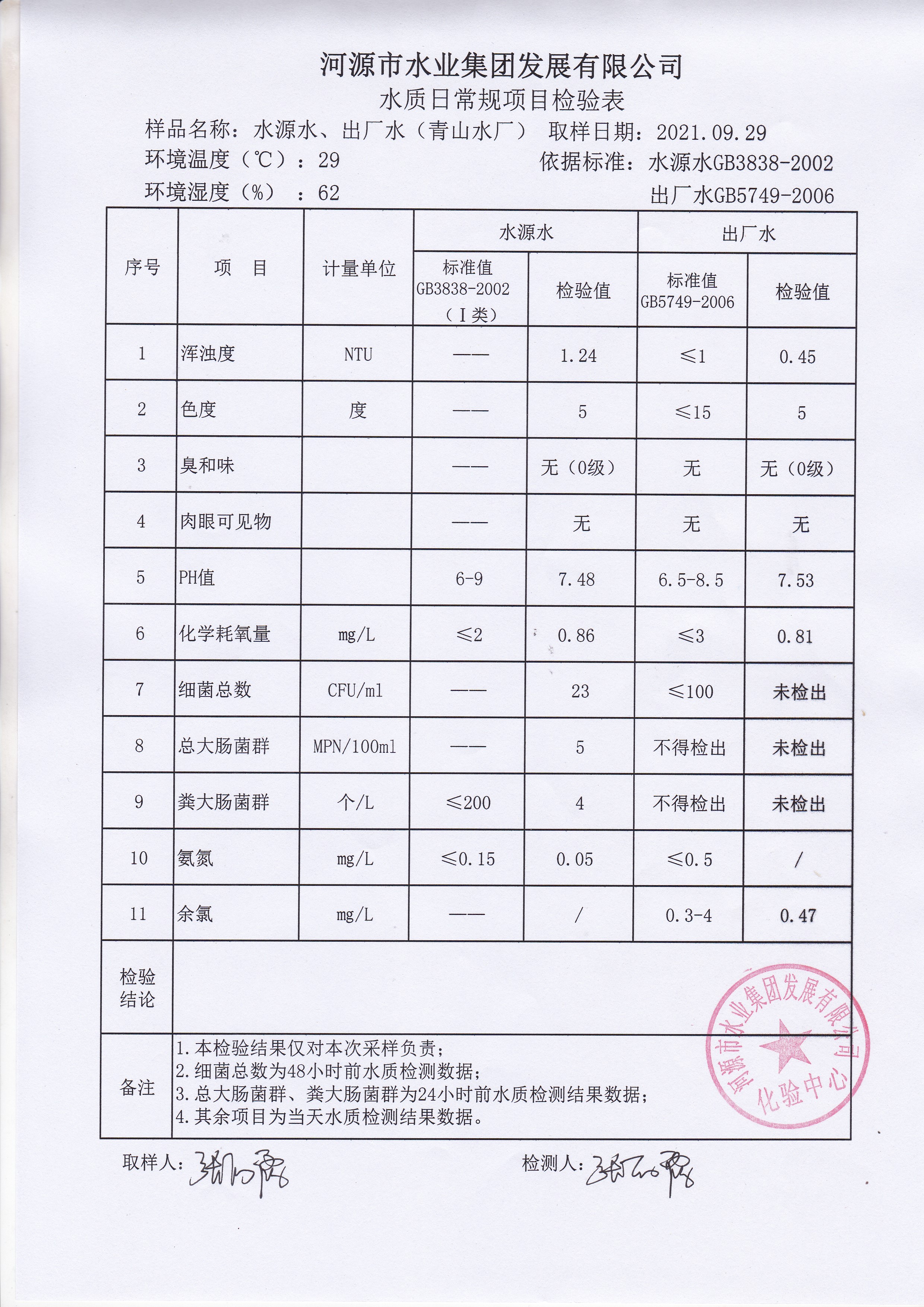 2021年9月29日水质检验报告