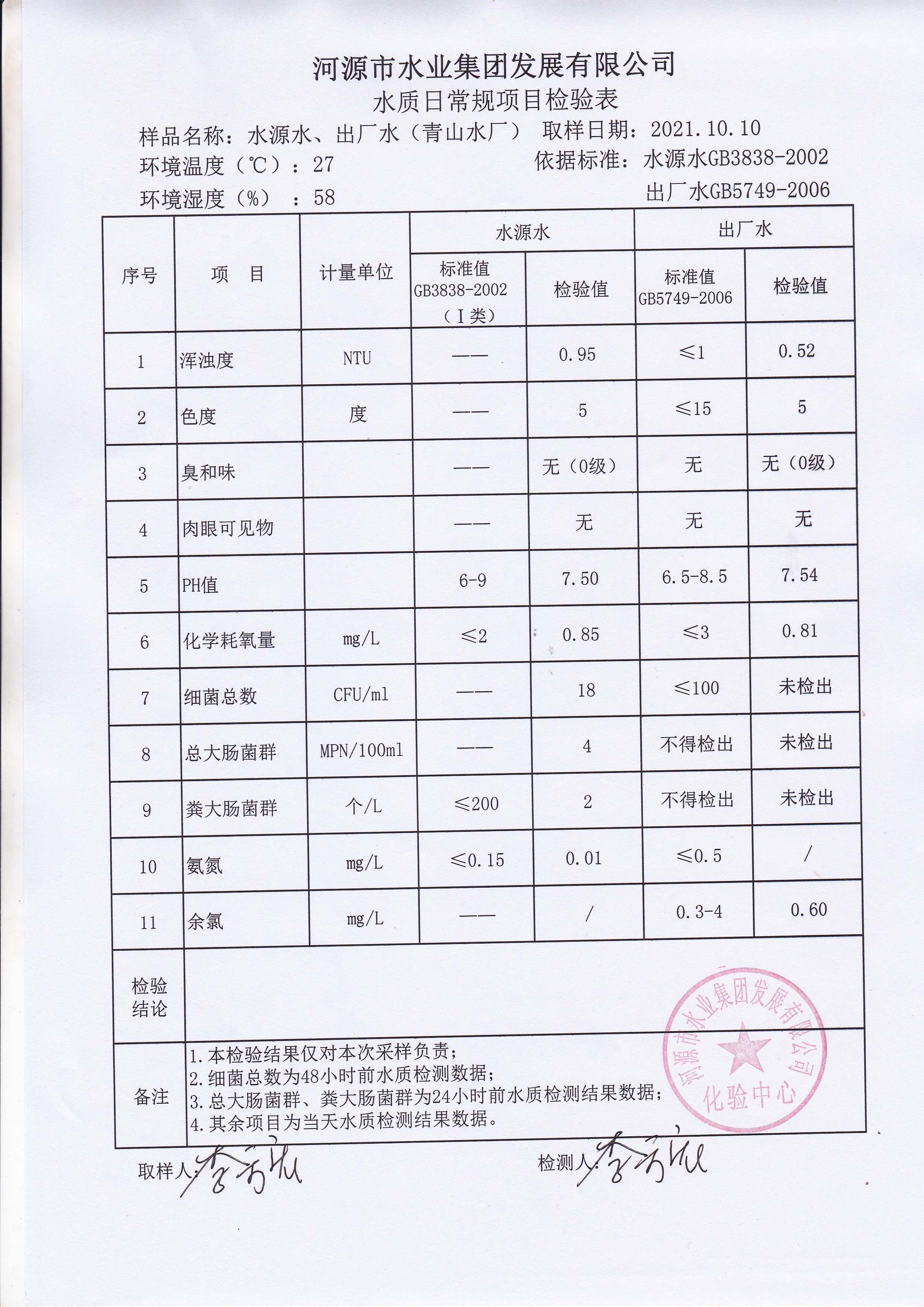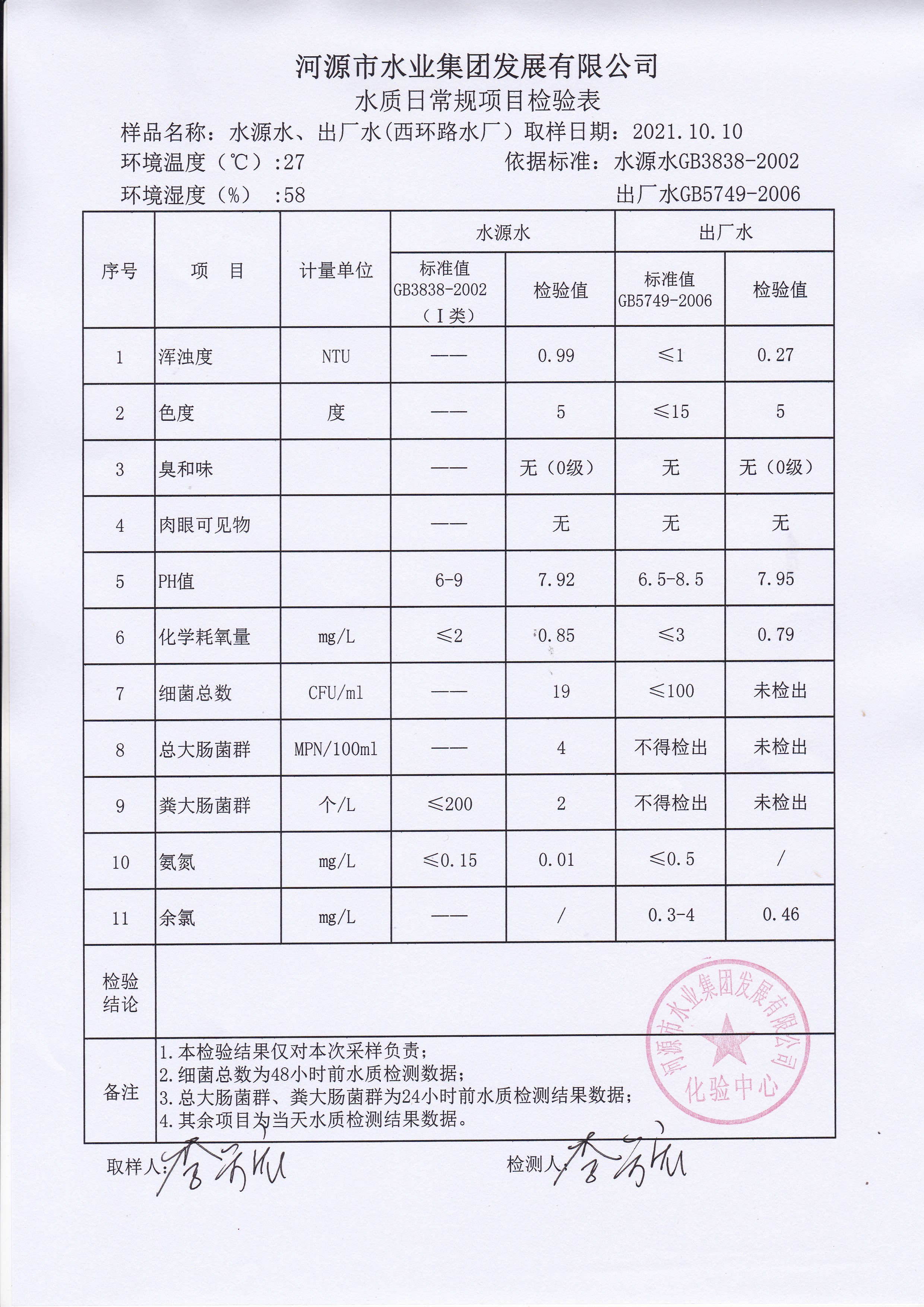 2021年10月10日水质检验报告