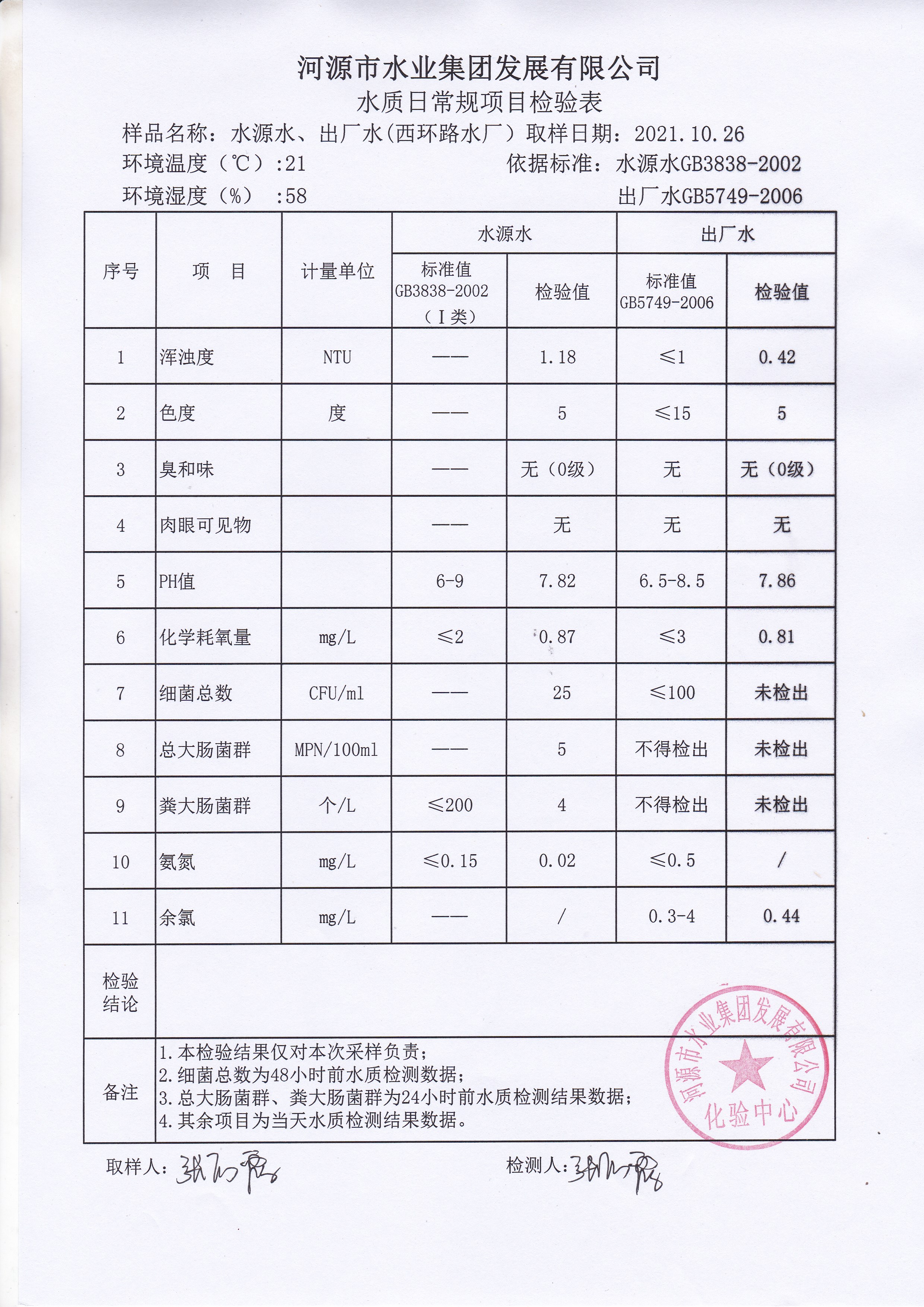 2021年10月26日水质检验报告