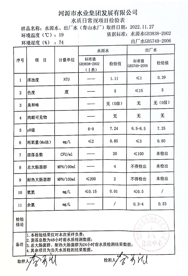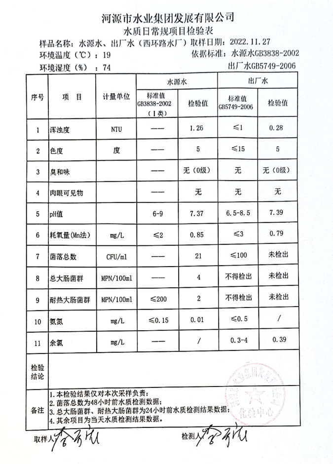 2022年11月27日水质检验报告