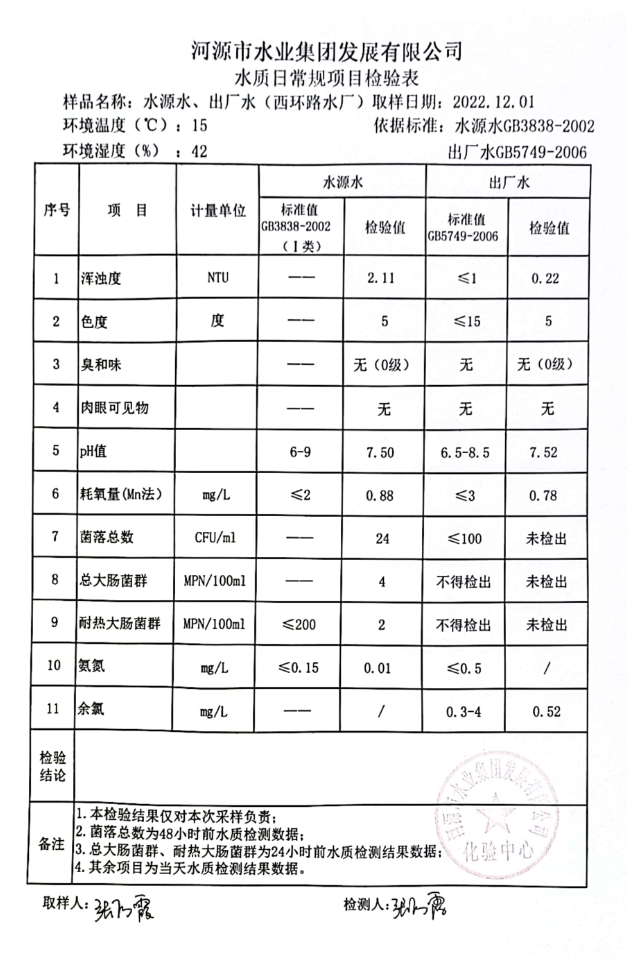 2022年12月2日水质检验报告