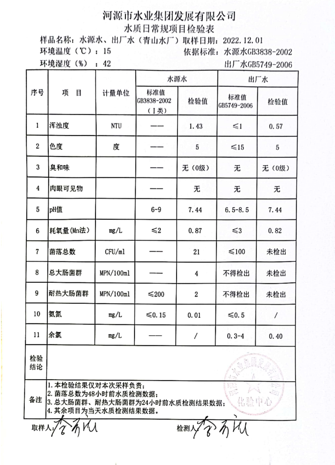 2022年12月1日水质检验报告