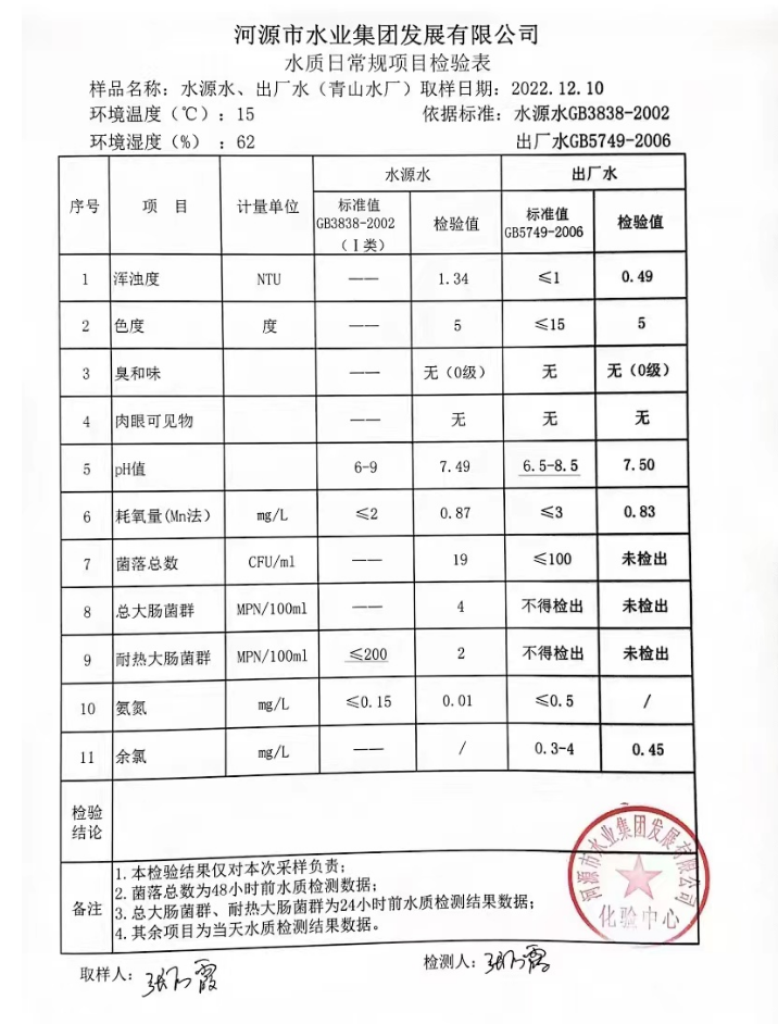 2022年12月10日水质检验报告