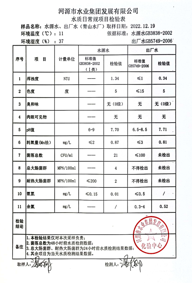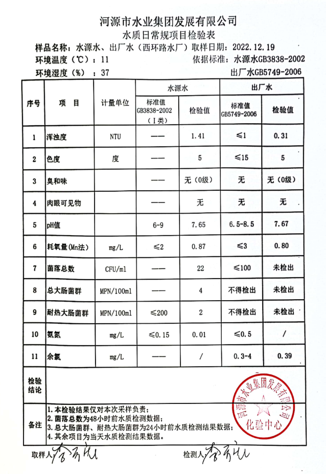 2022年12月19日水质检验报告