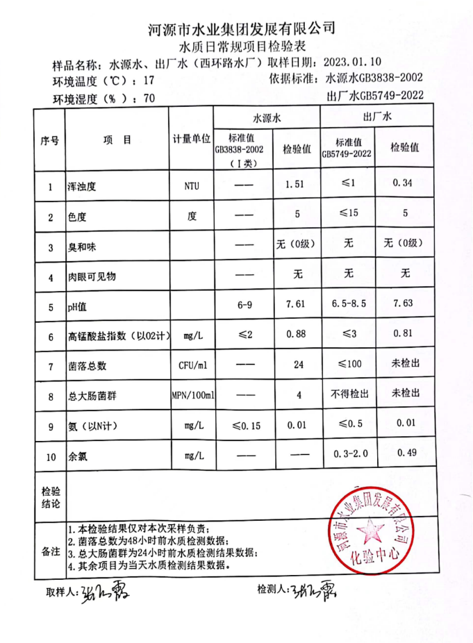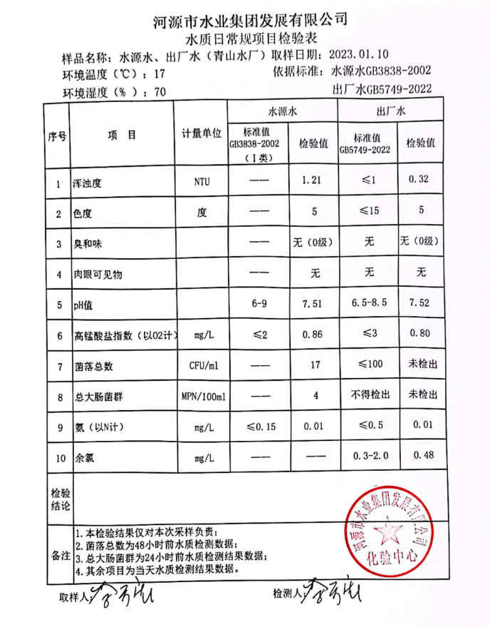 2023年1月10日水质检验报告