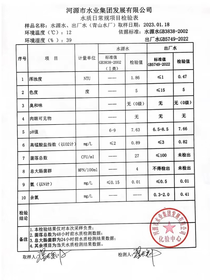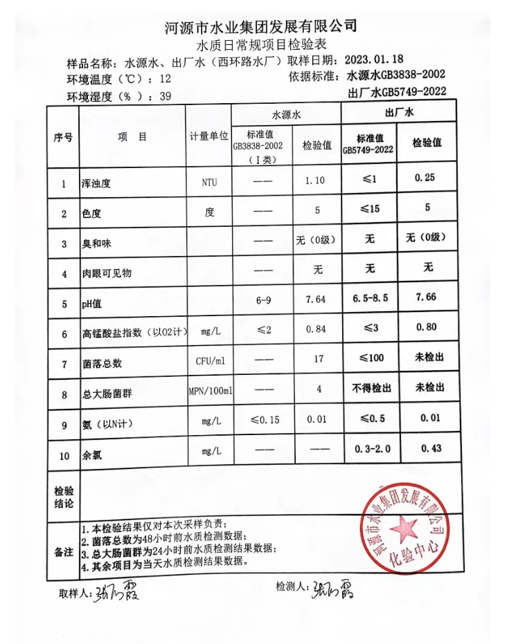 2023年1月18日水质检验报告