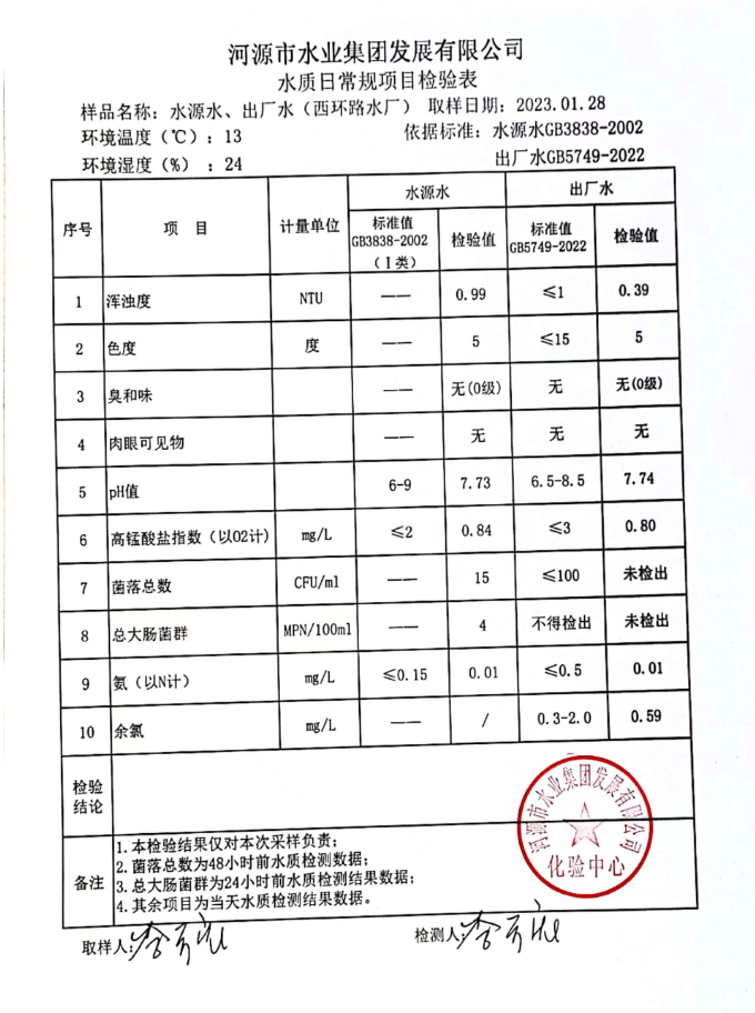 2023年1月28日水质检验报告
