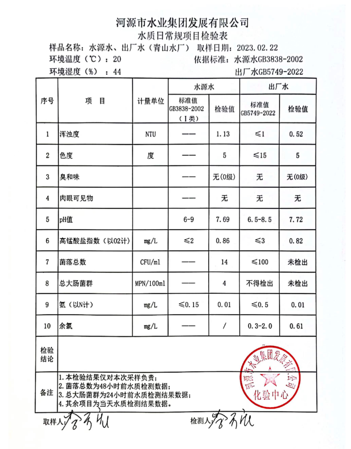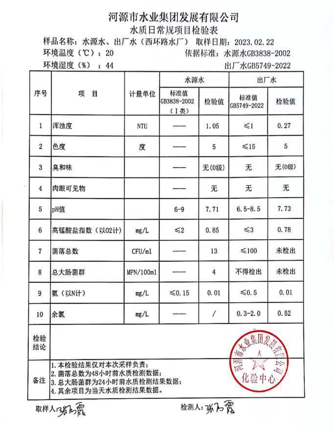 2023年2月22日水质检验报告