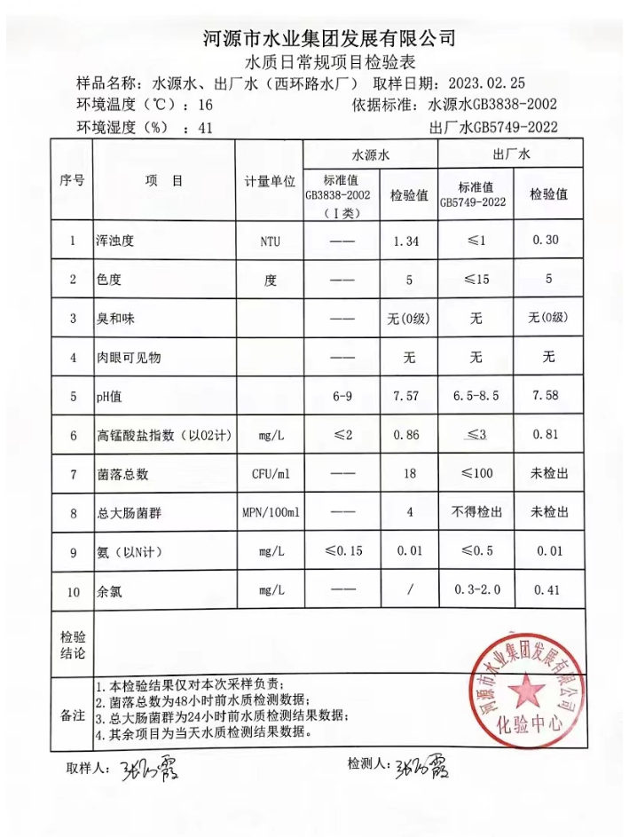 2023年2月25日水质检验报告