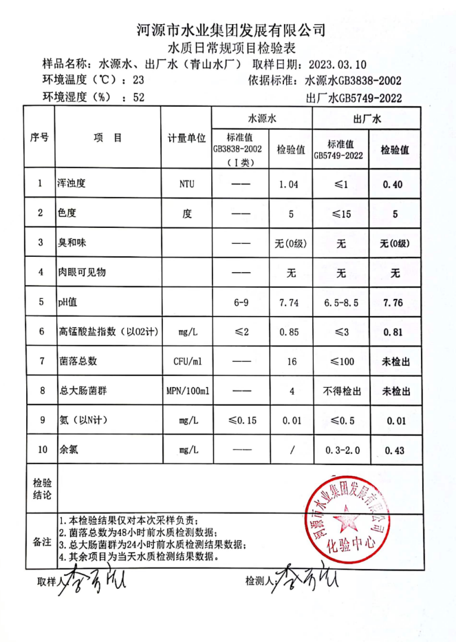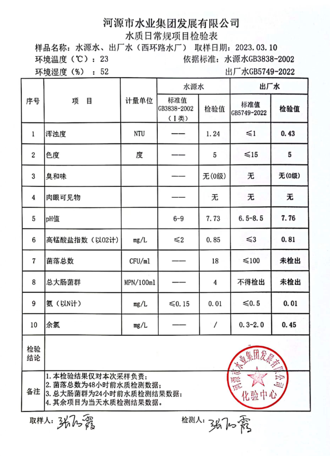 2023年3月10日水质检验报告